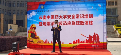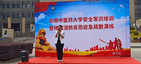 师生在五行广场集合完毕后,保卫处处长秦红军介绍了开展综合演练的目的:今天在呈贡校区举办校园综合安全应急演练活动,旨在进一步加强我校校园安全宣传教育力度,进一步增强我们的安全防范意识,进一步提升我们的安全应急自防自救能力,进一步全面推进平安校园建设工作。