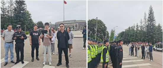 呈贡校区点名工作结束后,秦红军对参与点名查验工作的学生代表积极参与配合保卫处工作表示认可,鼓励同学们支持学校安防工作,在确保自身安全的前提下积极参与、共同维护校园平安,并给部分大学生安保委员发放“校园安防”志愿者证书,组织同学与现场保安队员进行交流互动,到各岗位慰问值守岗位的队员。