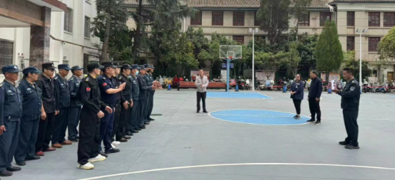 江松组织白塔校区驻校保安点名查验时提出,保安队员要坚守岗位,严格履职,严格规范处置问题和汇报工作。