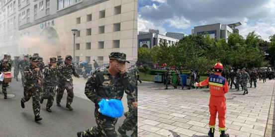 为提高学生面对地震、火灾等紧急事件时的安全意识、逃生自救能力。9月18日,我校2021、2022级新生在军训期间组织开展防震暨消防演练活动。消防演练活动包括“模拟应急疏散演练”、“消防器材讲解”以及“亲身体验”三部分。由来自昆明市消防救援支队的消防人员负责现场教学和实践培训。