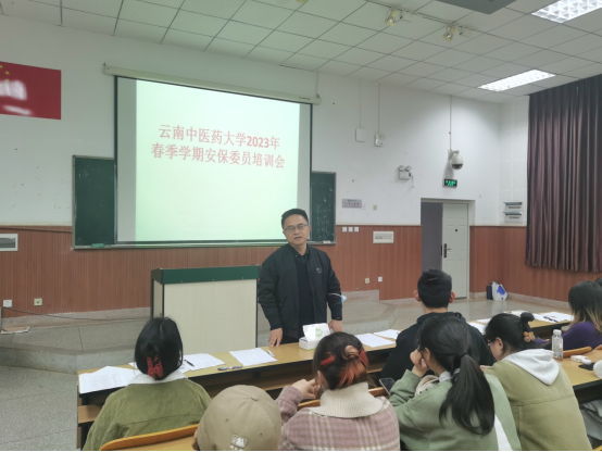 2023年3月6日,保卫处组织学校安保委员开展春季学期安保委员培训会,保卫处处长秦红军、雨花派出所副所长兼驻校民警沈立奇分别为同学们讲授安全知识。