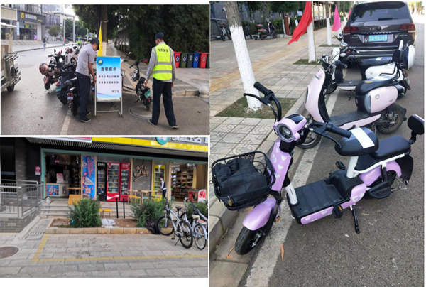为有效解决非机动车乱停放问题,营造良好的校园出行环境。5月17日,保卫处治安科根据《云南中医药大学校园交通安全管理暂行办法》在呈贡校区开展非机动车乱停放宣传整治工作。
