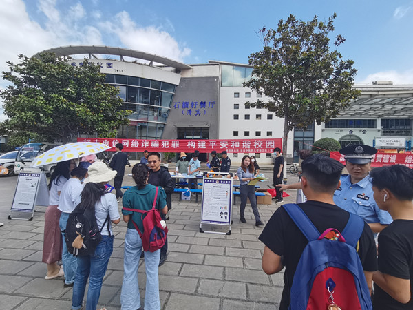 5月20日上午,保卫处联合呈贡公安分局雨花派出所,在呈贡校区一期二食堂(丁香园)前小广场开展一次以“打击电信网络诈骗犯罪,构建平安和谐校园”为主题的教育宣传活动。