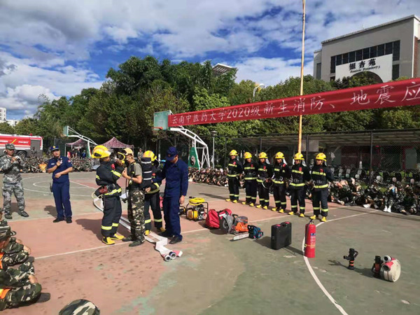 7月11日,学校消防安全委员会办公室(保卫处)利用2020级新生军训期间,组织新生在呈贡校区开展地震、消防和应急逃生疏散演练活动。
