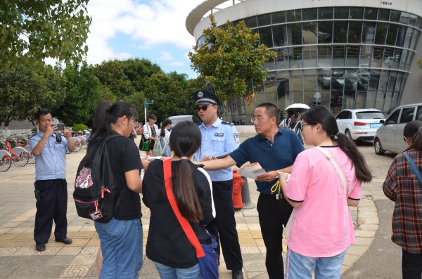6月21日上午,我校在呈贡校区开展 “2019年暑期扫黑除恶及电诈、校园贷防范活动”,由保卫处与雨花街道共办。